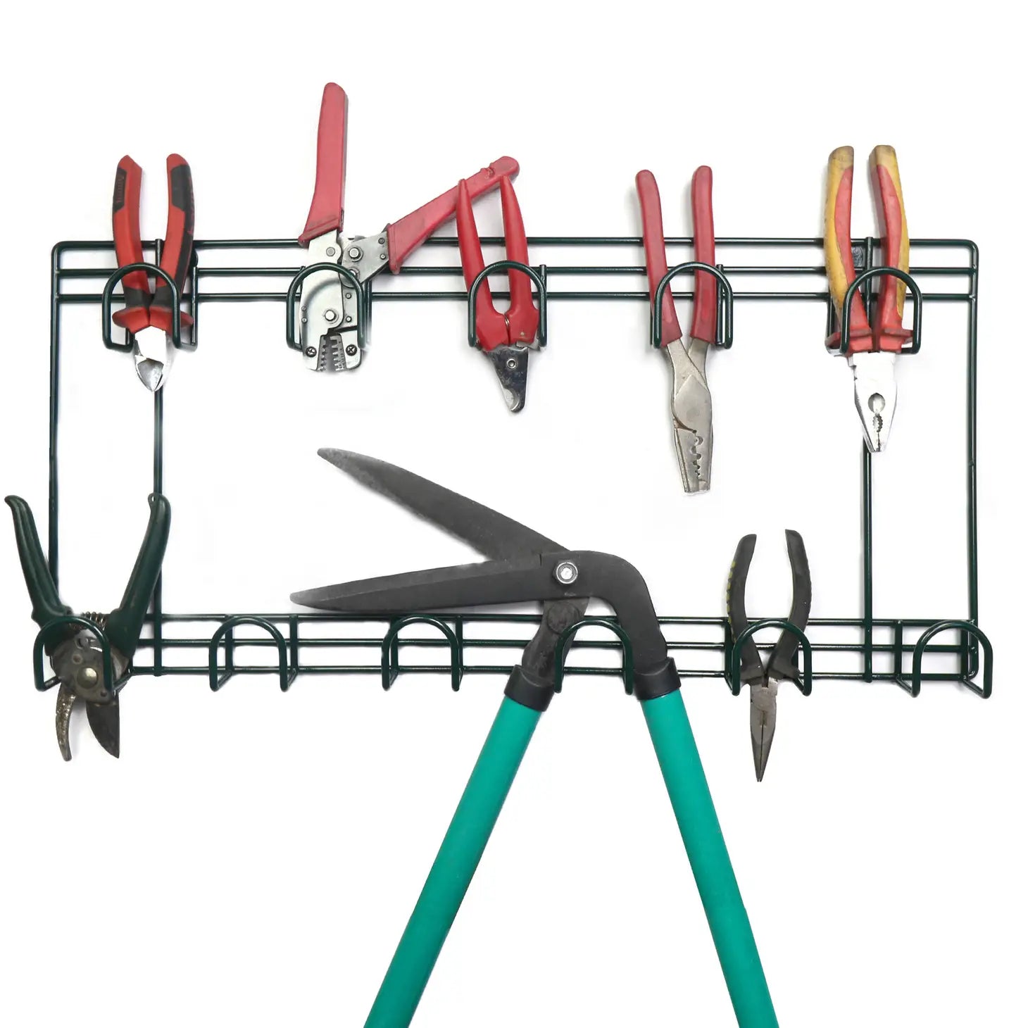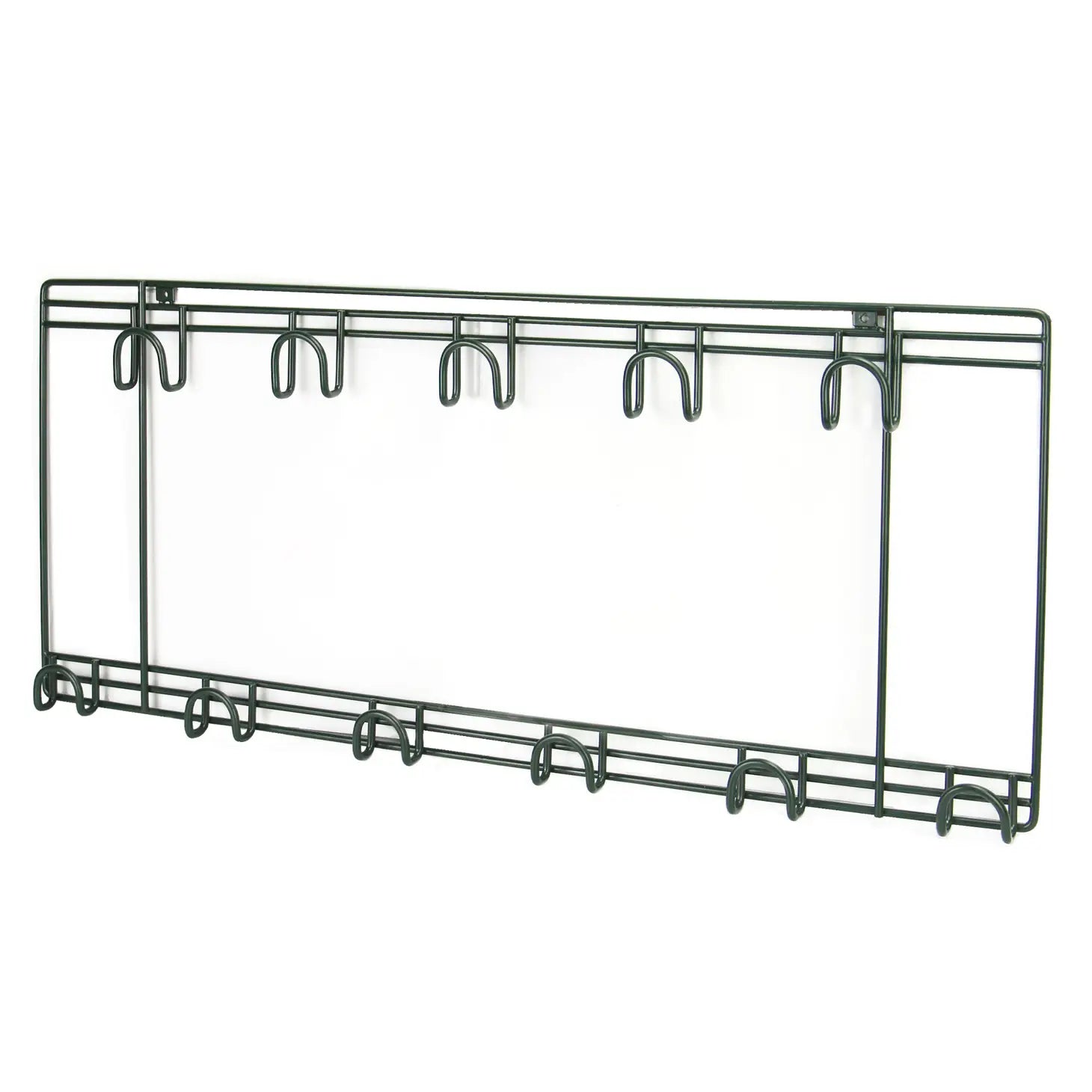 This Maison & White Garden Tool Rack has 2 tiers and is measured at 66.5cm width and 30.5cm tall meaning you have more than enough storage space to store all of your tools in the garage and gardening accessories in the shed. The width between the hooks are 8cm, plenty of space to hang your larger tools.