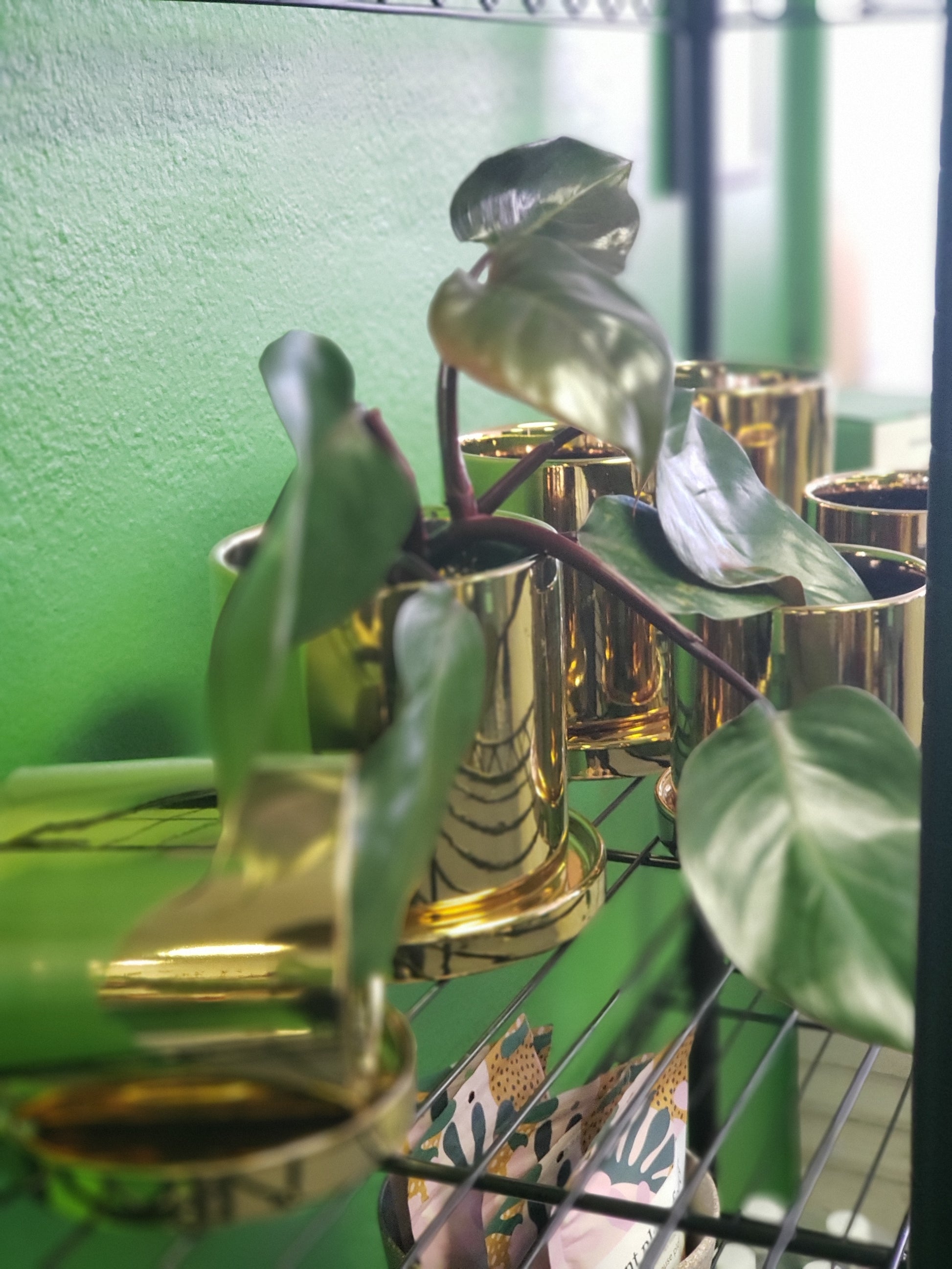 Lovely, golden ceramic plant pot. This pot has drainage holes and a saucer. Looks just as lovely, if not better, than the picture. Pair with one of our indoor plants with rock top dressing for an overall finished look.