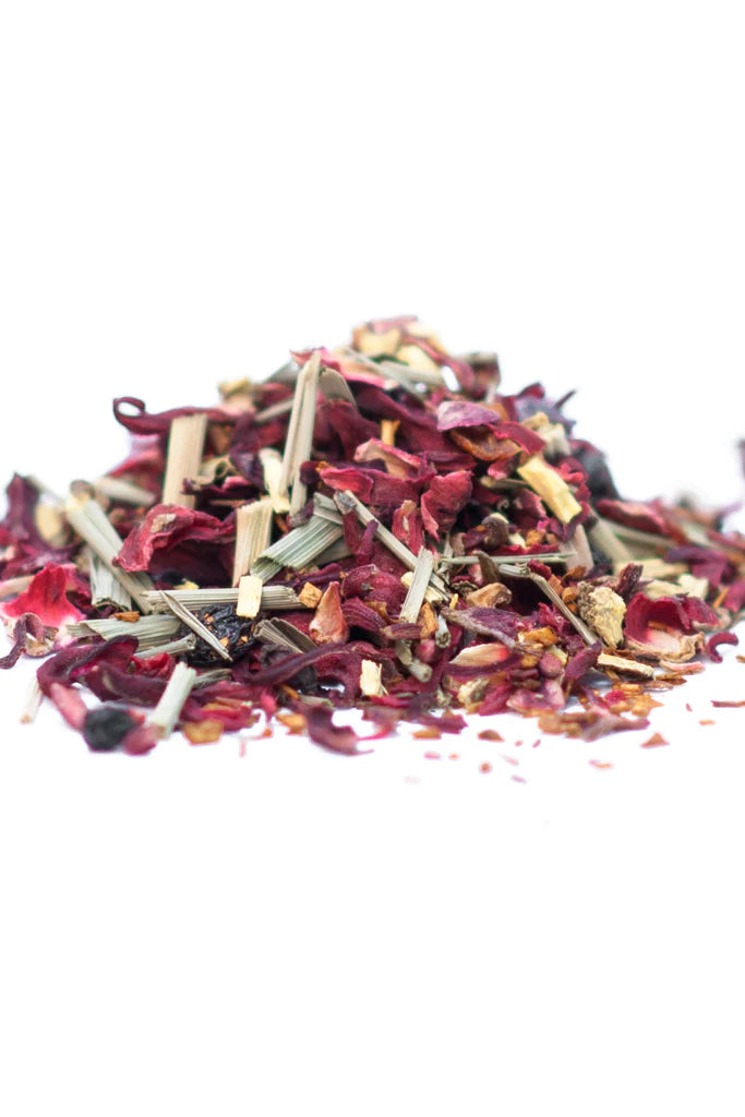 Crafted from: Organic Hibiscus, Rosehips, Black Currant, Cranberry, Blueberry, Elderberry, Organic Lemongrass, Organic Rooibos, Organic Licorice Root