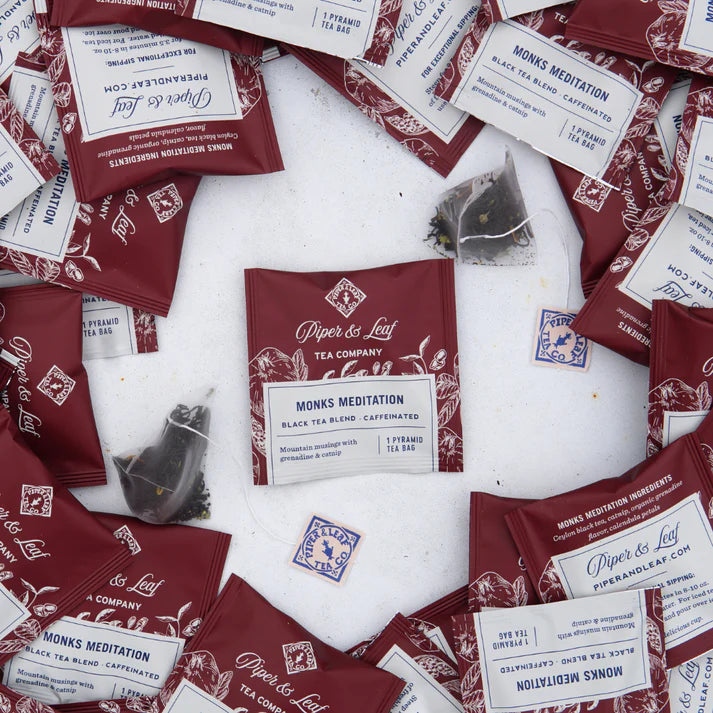We package our whole leaf teas into beautiful pyramid sachets made from non-GMO Sugar Cane plants. When you are done steeping, you can compost the entire thing. No microplastics!