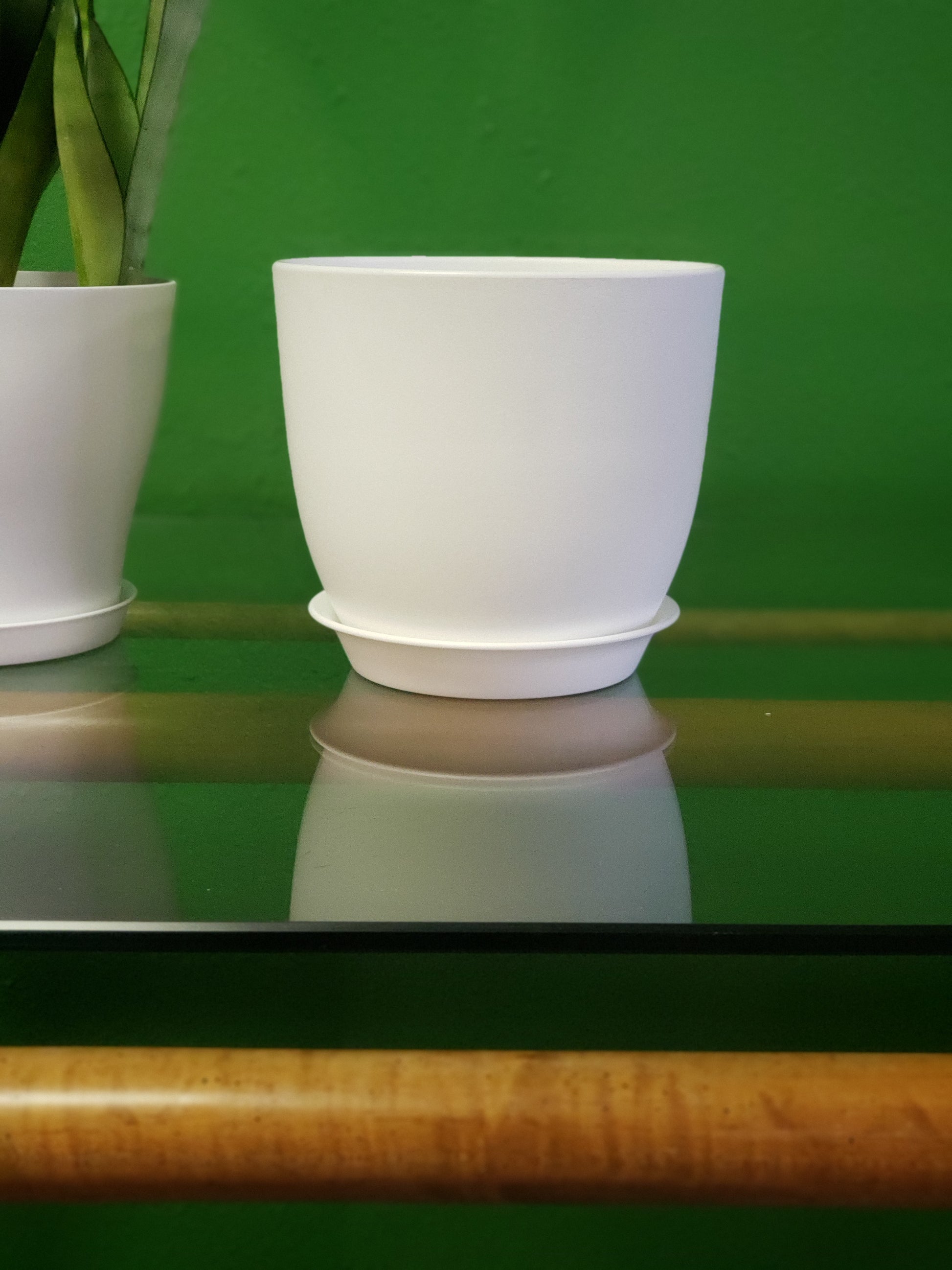 White Plastic Plant Pots with Drainage Holes. These plastic pots are designed with matte finishing exterior in soft, is 100% PP and safe.