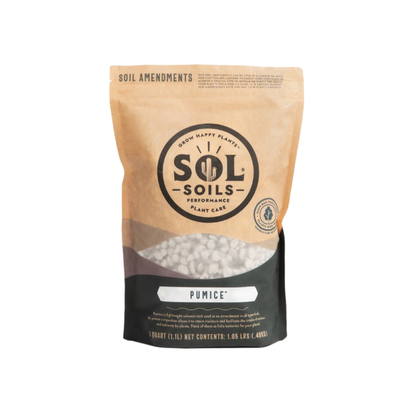 Pumice (filtered 3/8" to 1/4" in size) is relatively lightweight volcanic rock used as an amendment in all types of soil. Its porous composition allows it to retain moisture and nutrients during watering, and release them slowly over time as the root system requires. Think of these components as little batteries for your plants!