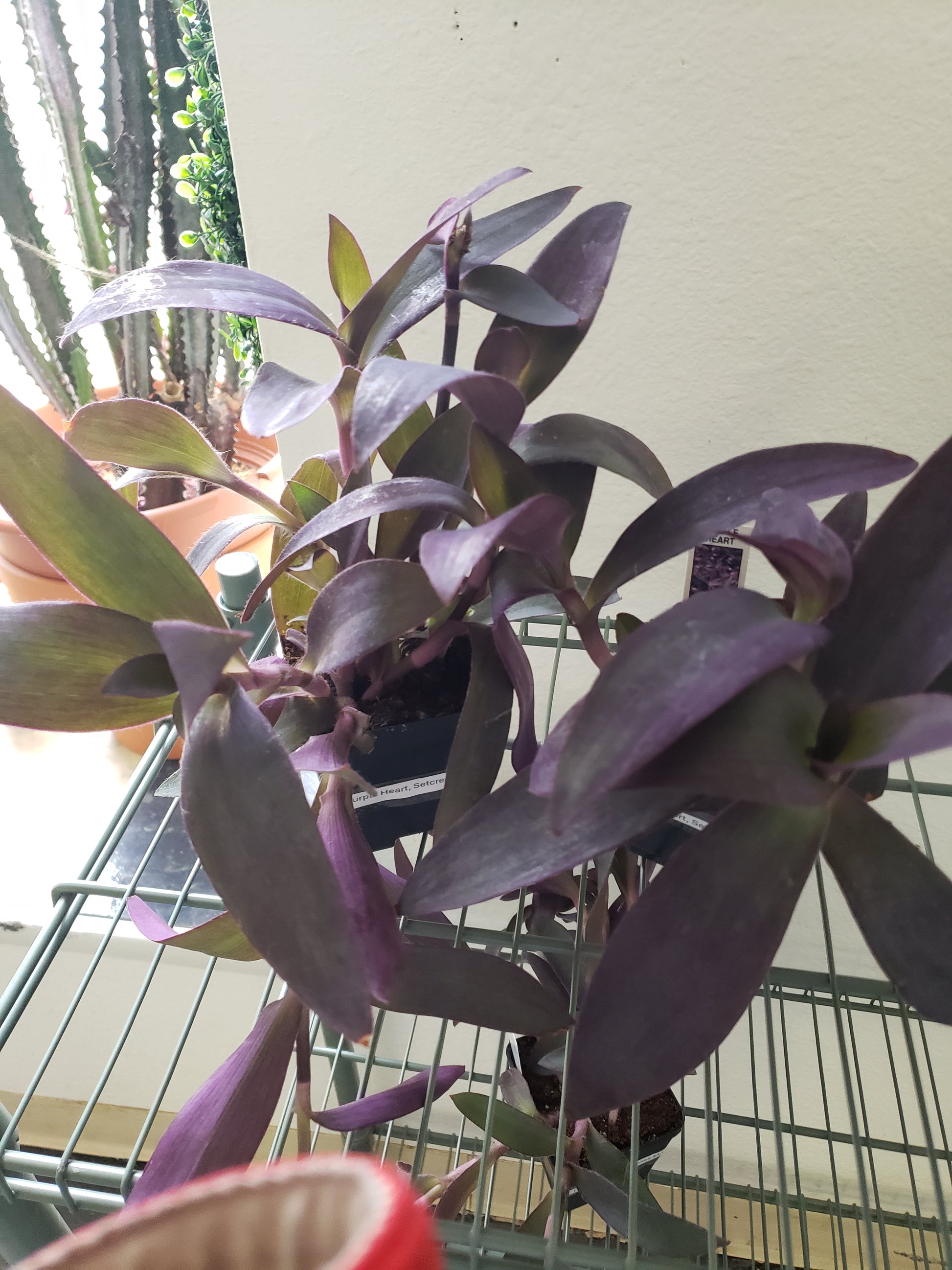 Purple Heart (Setcreasea pallida, also known as Tradescantia pallida*) is a bold, trailing plant with stunning deep purple foliage and a groundcover vibe when grown outdoors.