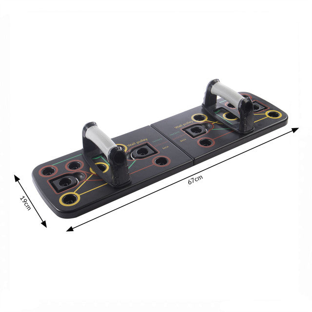 The different colours on the board help you target specific muscles like legs, chest, shoulders, back, and triceps offering upper or lower body workout, depending on your preference. Burning calories and building strength with this innovative push-up system will lead you through a total-body strength and conditioning workout.