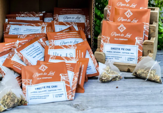 We package our whole leaf teas into beautiful pyramid sachets made from non-GMO Sugar Cane plants. When you are done steeping, you can compost the entire thing. No microplastics!
